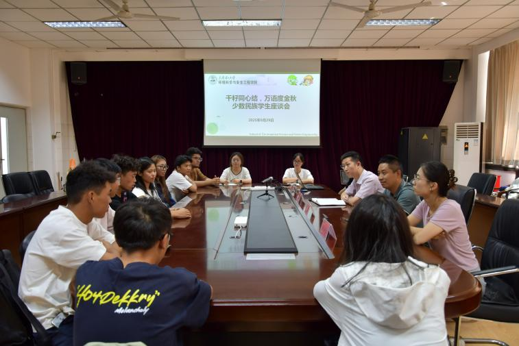 为深入学习贯彻习近平总书记关于加强和改进民族工作的重要思想和习近平总书记关于宗教工作的重要论述,推进学校民族团结进步事业,加强民族宗教政策法规学习宣传,促进各民族学生交流交往交融,9月29日,环境科学与安全工程学院召开“千籽同心结,万语度金秋”少数民族学生代表座谈会,学院党委负责同志、辅导员以及少数民族学生代表参加会议。